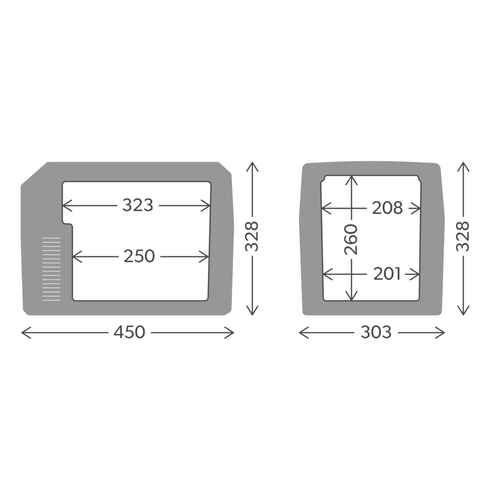 The device cools to 27 °C below the ambient temperature and heats to +65 °C.