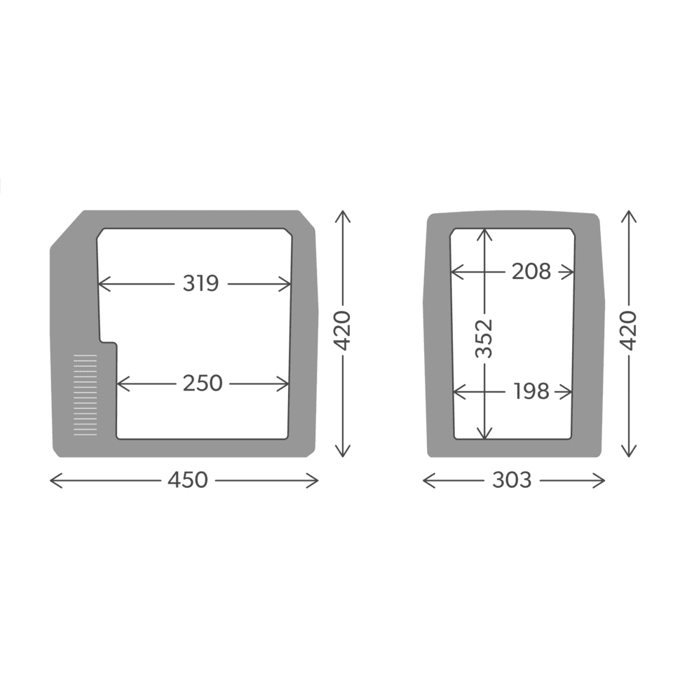 The device cools to 27 °C below the ambient temperature and heats to +65 °C.